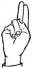 На ћирилици написано БУДИМИР ВАРИНАЦ састоји се из 14 слова [?]. Исписано ћириличном једноручном азбуком за глувонеме: